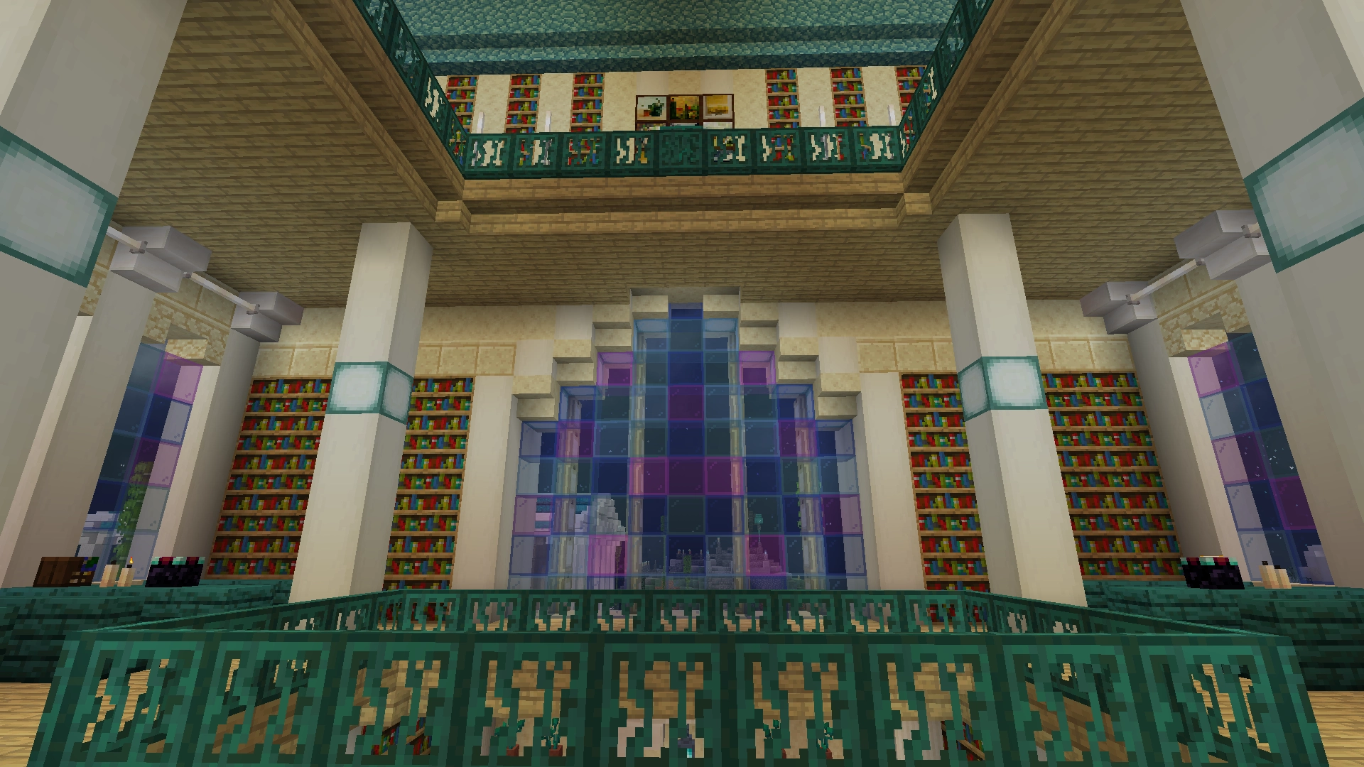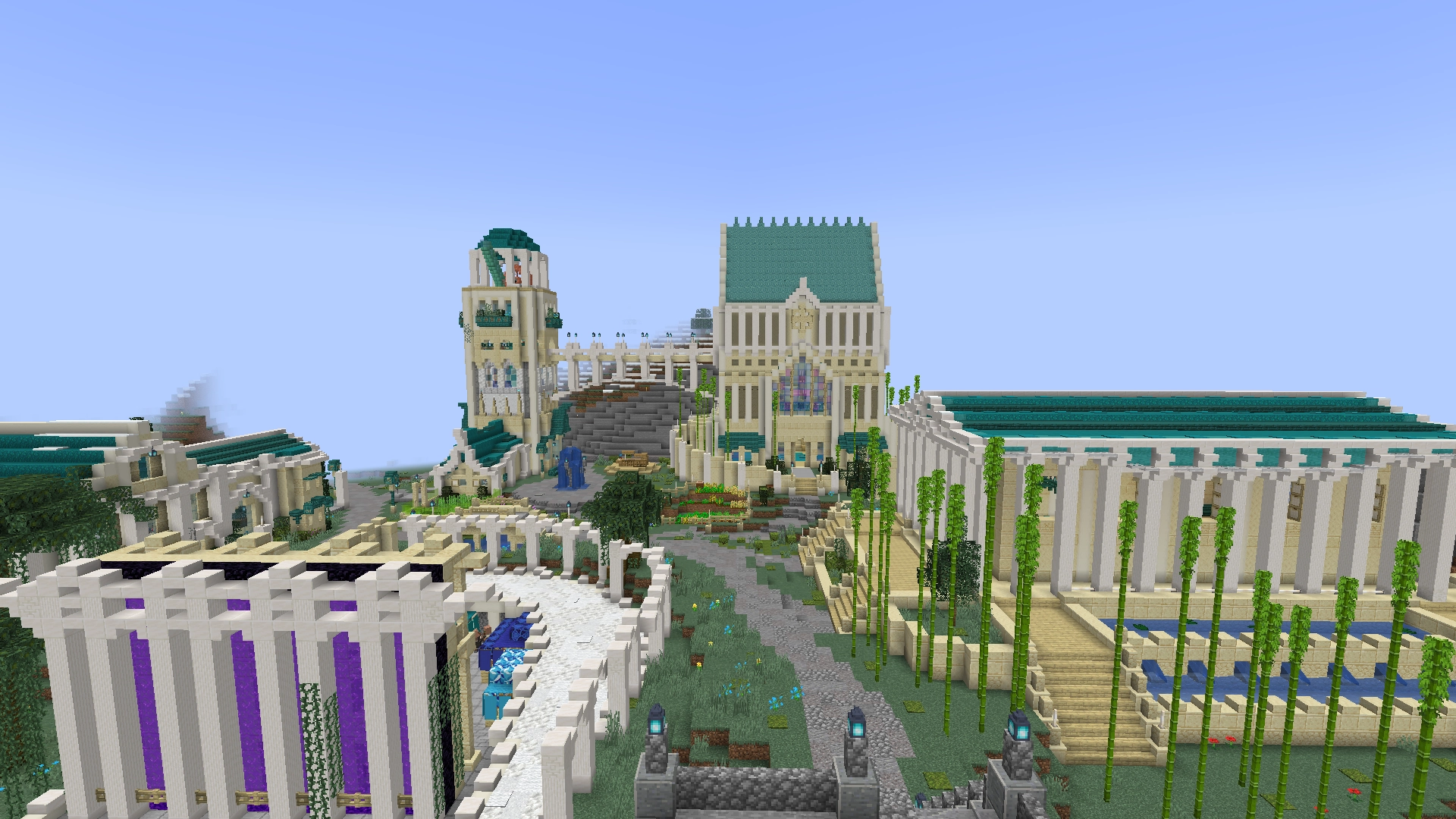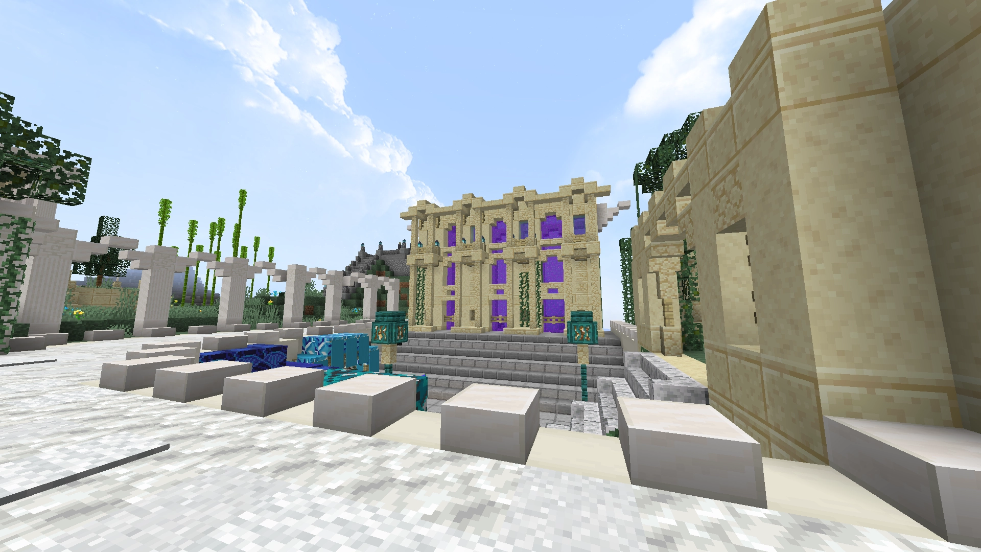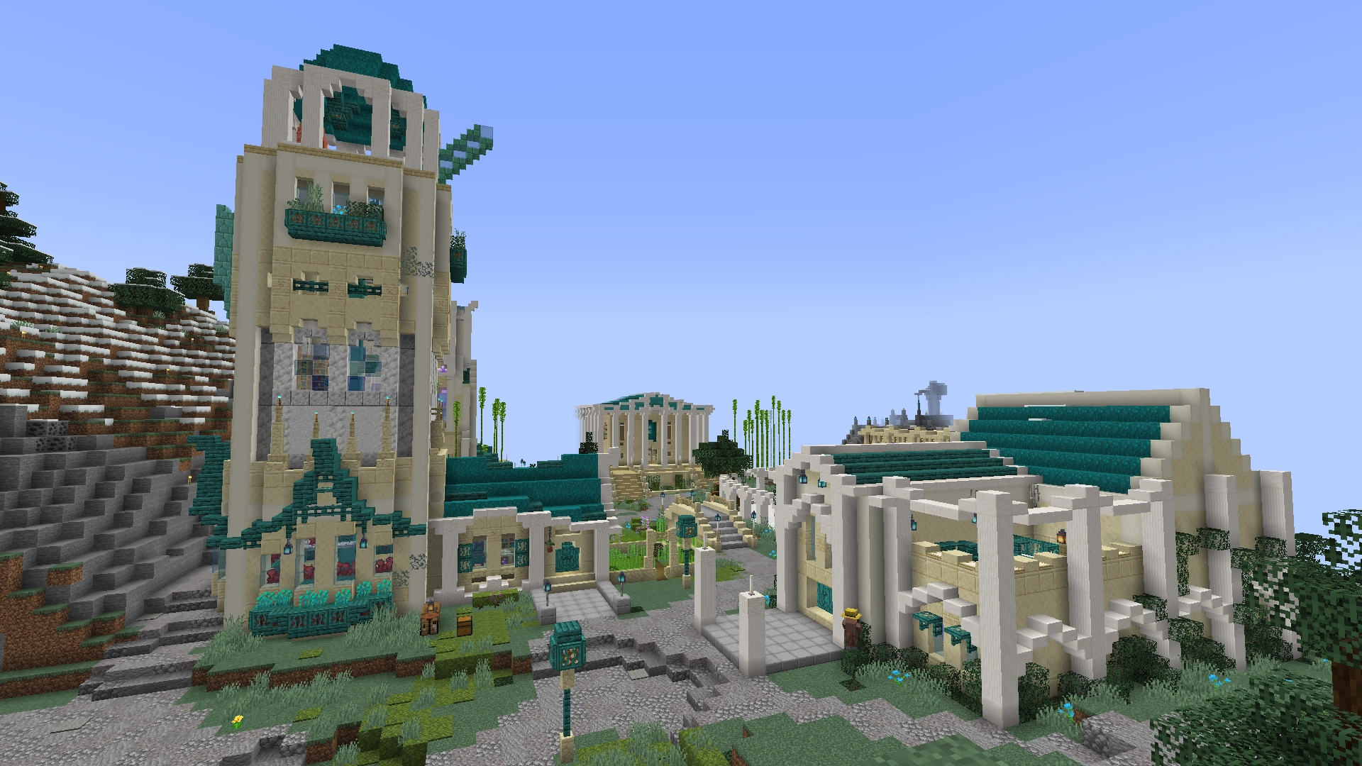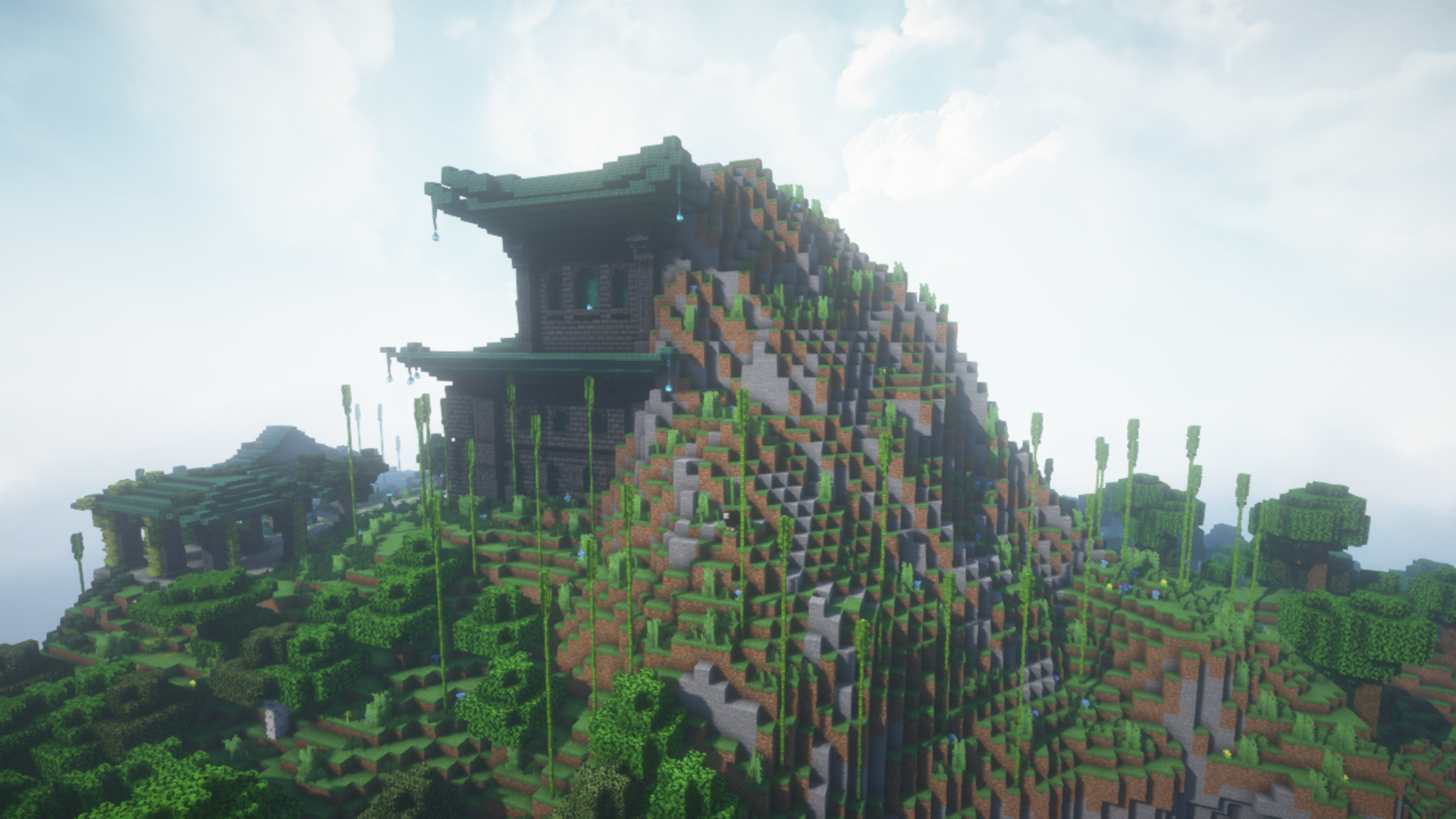 A deepslate stone and dark prismarine roof. Inspired by Sky Haven Temple in Skyrim.