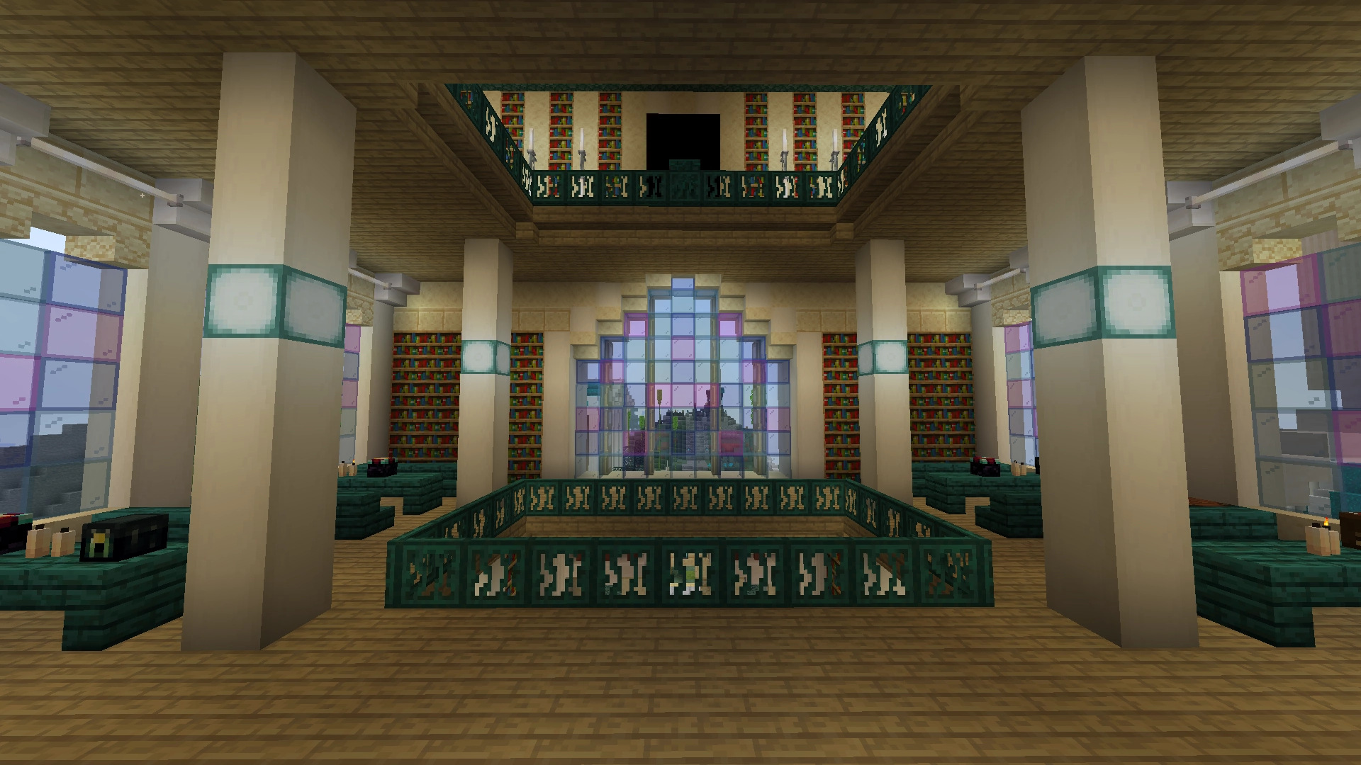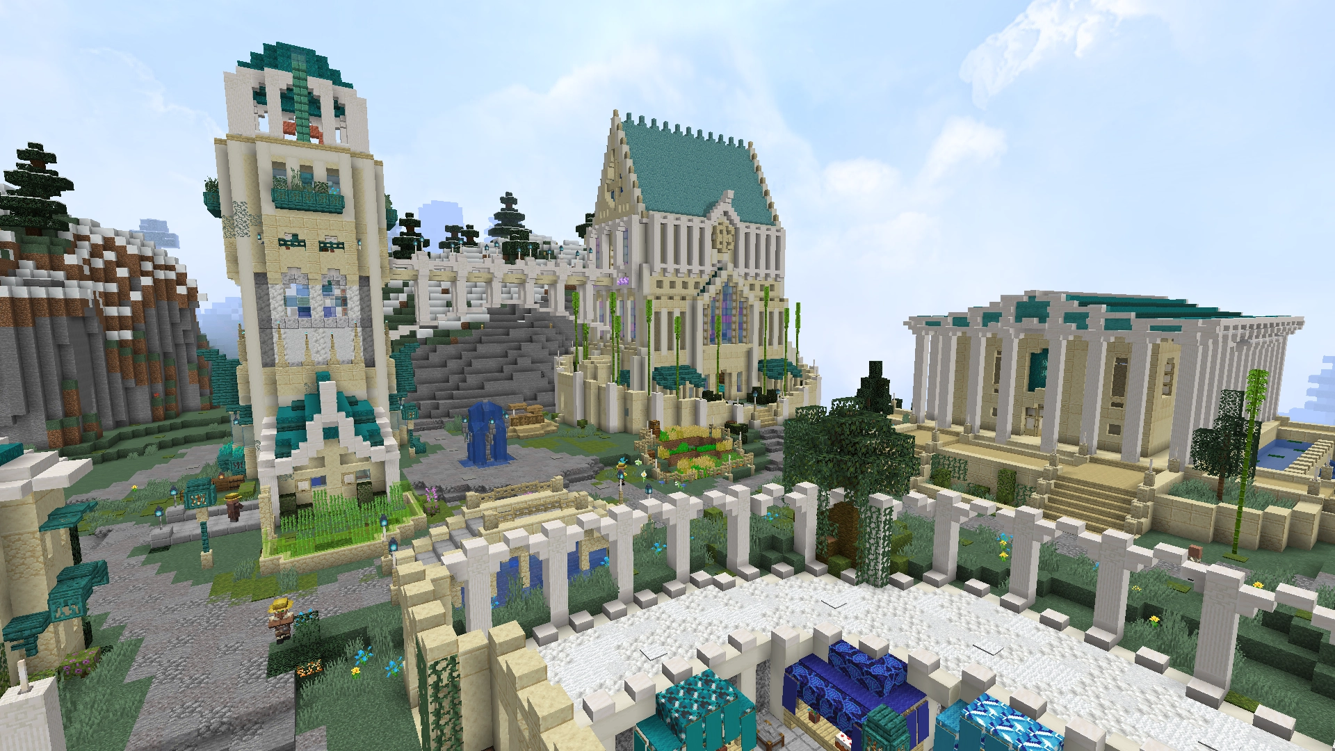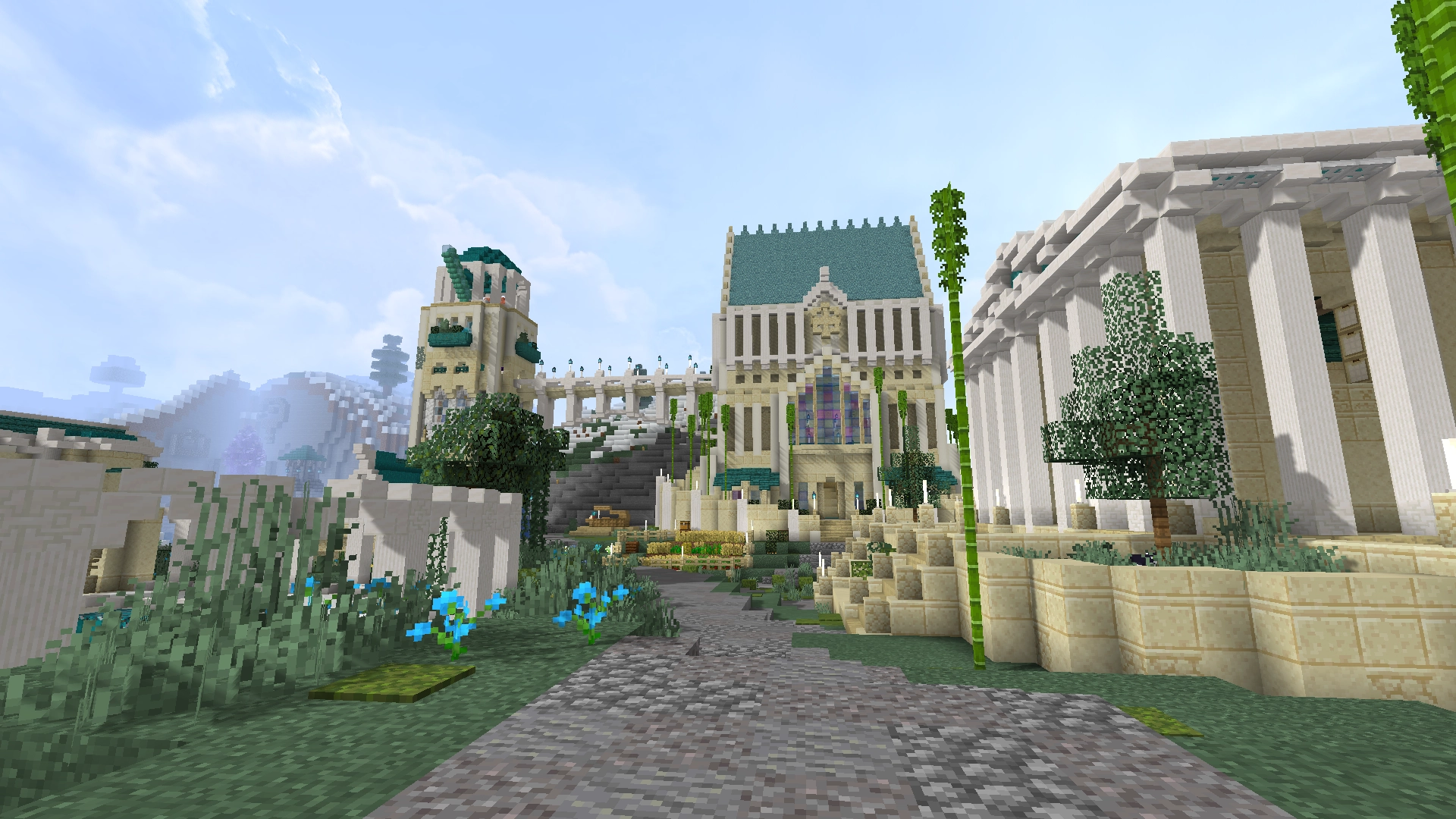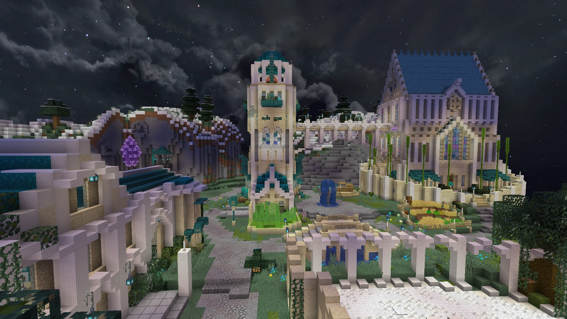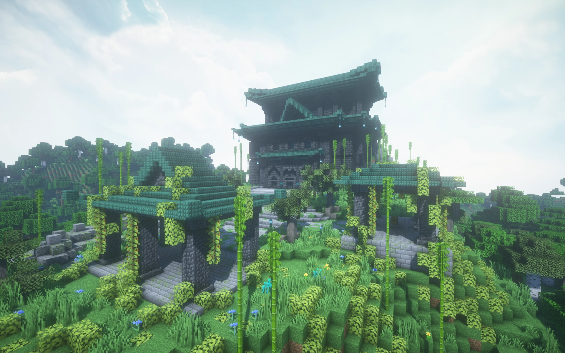 A deepslate stone and dark prismarine roof. Inspired by Sky Haven Temple in Skyrim.