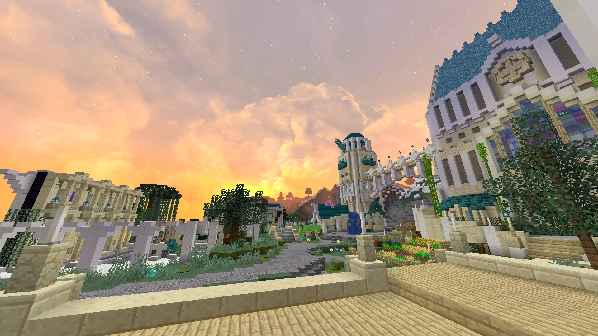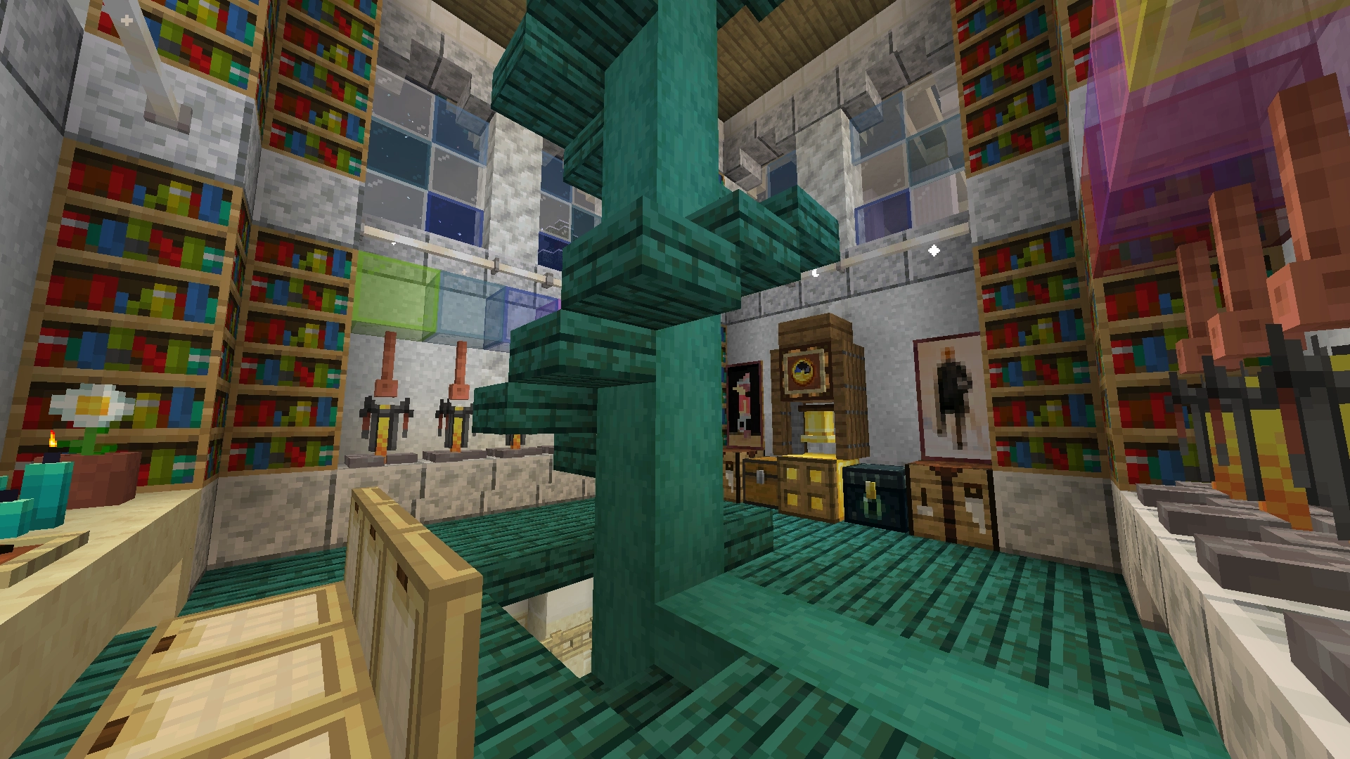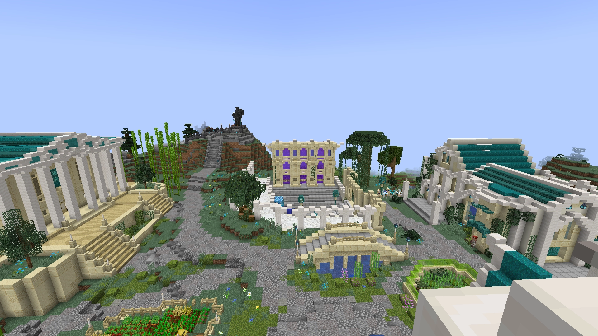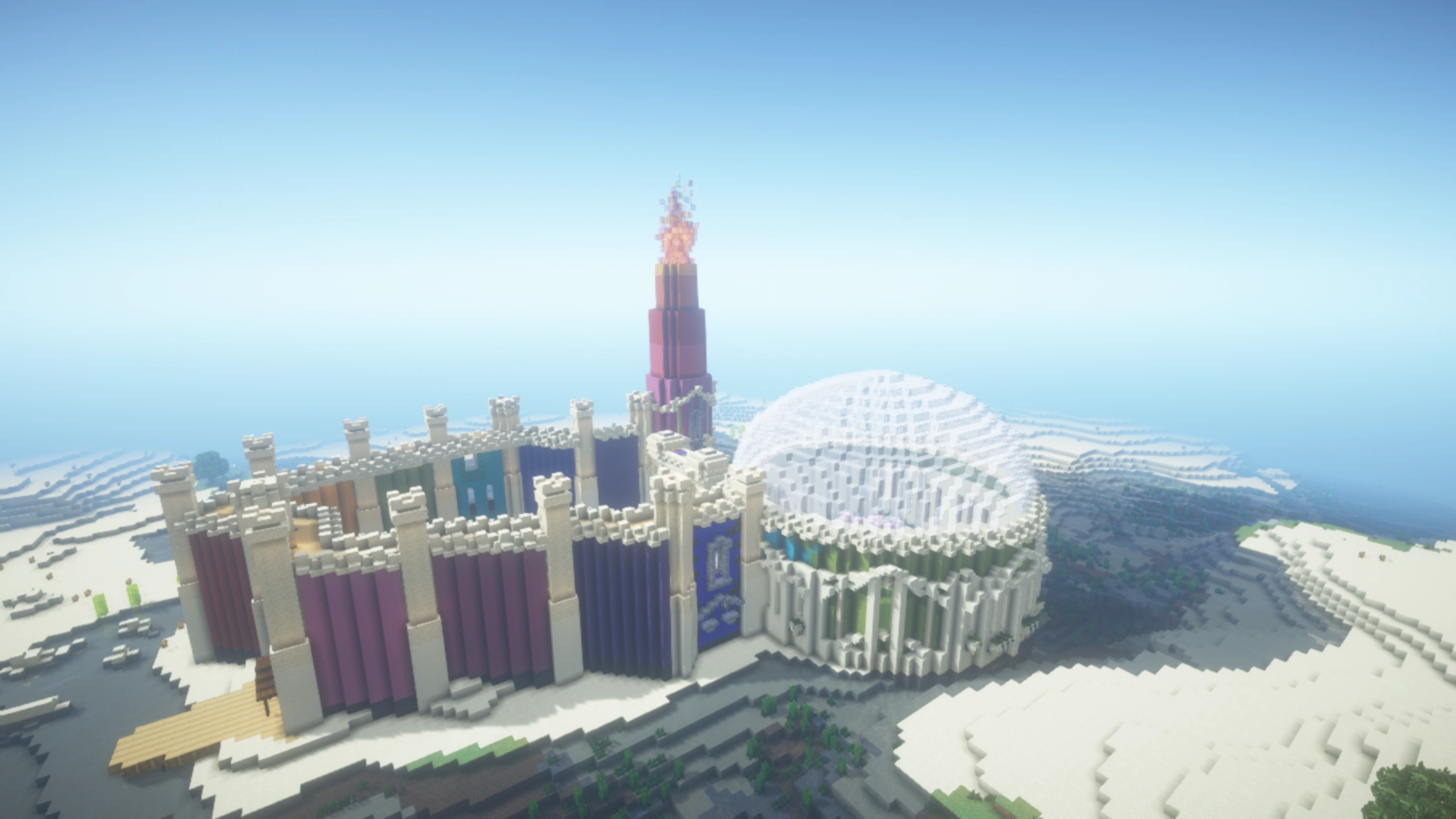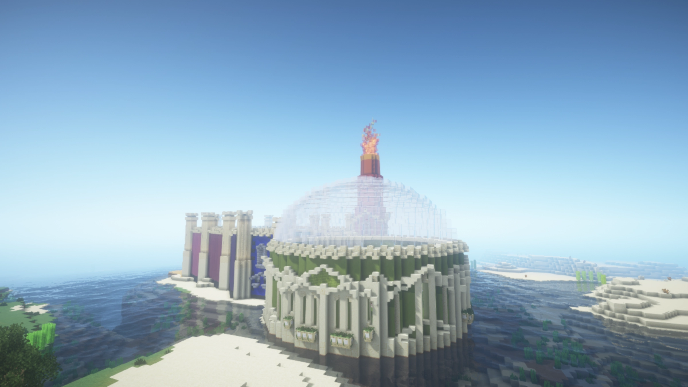 A deepslate stone and dark prismarine roof. Inspired by Sky Haven Temple in Skyrim.