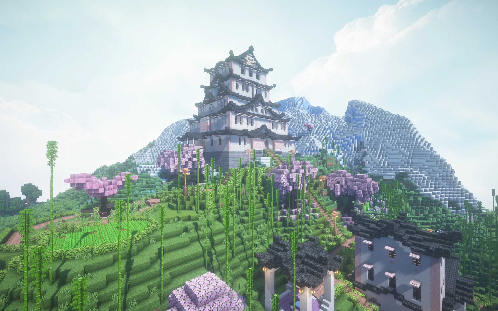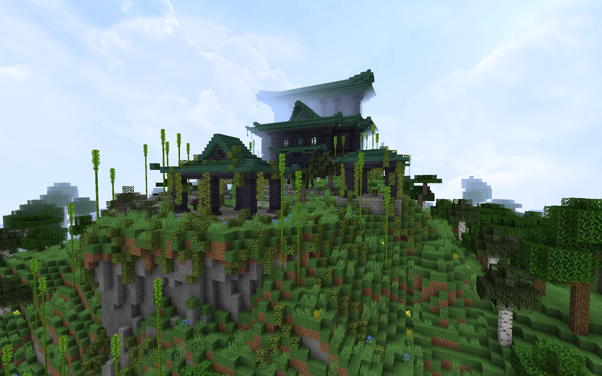 Quartz has a very subtle light pink hue in its white. Paired with the pastel cherry wood and black tile curved roofs for contrast, this build is incredible. The buildings top down are as follows: 1. The Grand temple, in which wise ninja meditate, contemplate, and plan to keep the peace. 2. Water Gazebo, in which ninja can stand in warm shallow water, and heal their wounds. Many ninja practice yoga and breathing here. Nen-users are able to stand on top of the water by concentrating their inner energy. 3. The Dojo, where young ninja train to become better, stronger, wiser. 4. Tea House, in which a wise, kindly retired ninja, makes tea for all. It is a soothing, warm drink to calm and energize the mind and body. 5. Guard House, where ninja guards keep a watch across the mountain, preserving the peace. 6. Wizard’s tower, attached to the land via an arched bridge, where the wily mage, enchants ninja tools and divines the heavens; however, he secretly desires more power than the council allows. The stars hold the answers. Infinite knowledge is at his fingertips. When the solstice arrives, he will make his move.