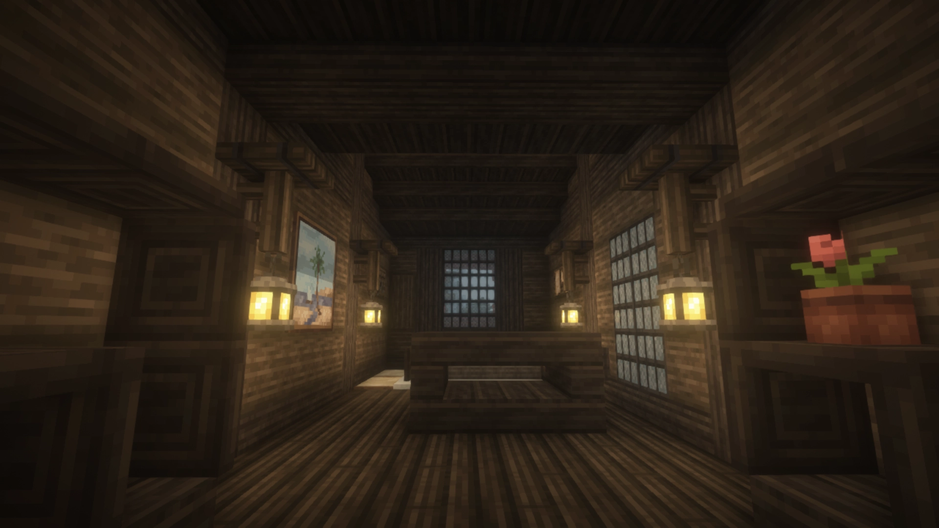 Made with sandstone, dark prismarine, prismarine, dark woods, and quartz pillars in the interior.